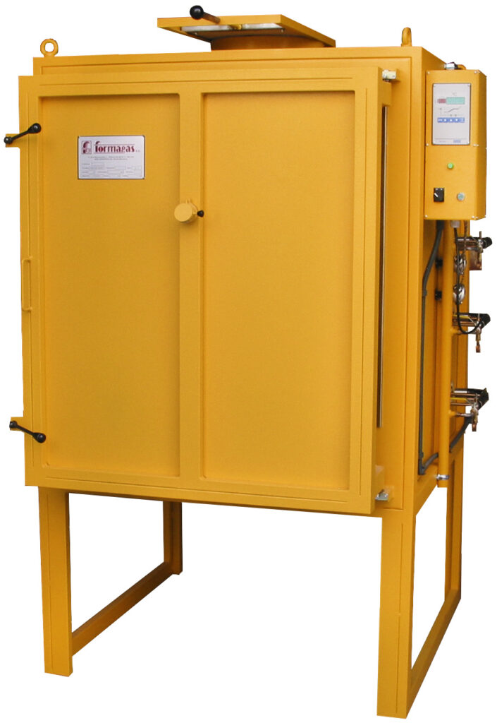Hornos de gas de carga frontal. Mod. HG-F revestimiento interior montado con fibra de manta  cerámica de 1400ºC. Con este acabado se consigue un menor consumo de potencia y mayor velocidad de calentamiento y enfriamiento. Perfecto para producir diariamente.